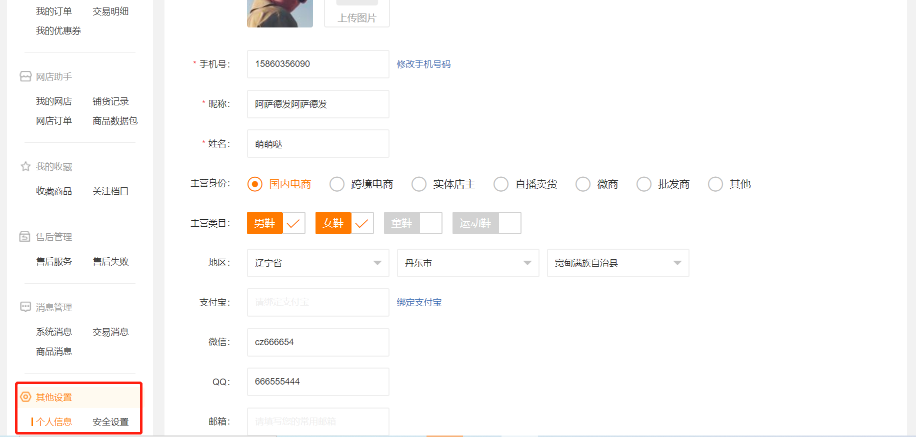 修改个人信息