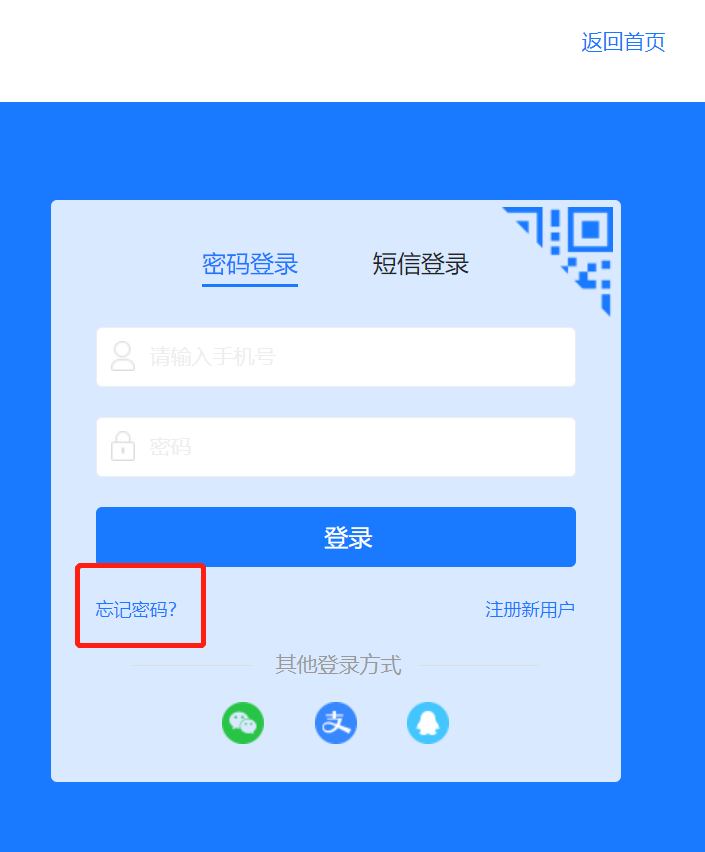 (也可使用与平台绑定的微信、支付宝、QQ账号扫码登录)